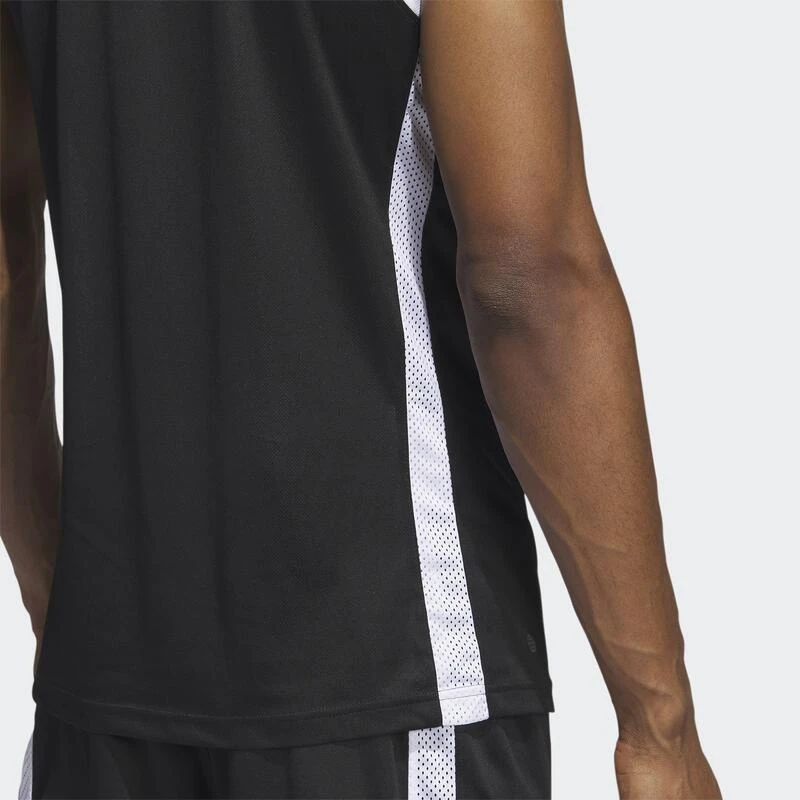 Een voor allen en allen voor een. In dit basketbalshirt zien jij en je ploegmaten er op de dag van de wedstrijd hetzelfde uit. Het is gemaakt van zachte dubbelgebreide stof om je elke minuut van de wedstrijd comfortabel te houden. AEROREADY houdt je droog van de tipoff tot het laatste fluitsignaal. De adidas Badge of Sport hoog op de kraag laat ruimte voor een teambadge op de borst.Dit met 100% gerecyclede materialen gemaakte product vertegenwoordigt slechts één van onze oplossingen om te helpen een einde te maken aan plastic afval.