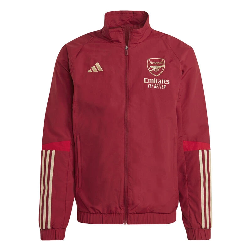 Vertegenwoordig je club met dit jack Arsenal adidas. Ontworpen om te worden gedragen door spelers bij openbare evenementen en voor de media, heeft het een slanke pasvorm en een comfortabele mesh voering. Dankzij de zakken langs de zijnaden kun je je telefoon en sleutels uit het zicht houden.nnDit product is gemaakt van gerecycled materiaal en bevat 70% minimum van gerecycled materiaal. Het is slechts een van onze oplossingen om plastic afval tegen te gaan.