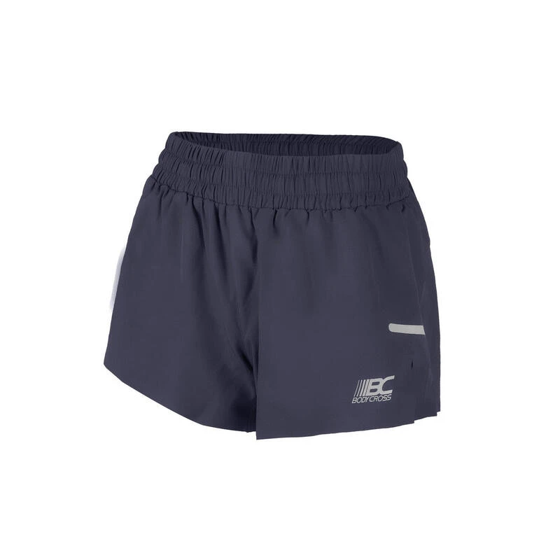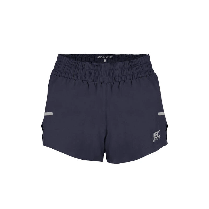 De shorts hebben een grote elastische tailleband met een trekkoord en een zak met rits aan de achterkant voor het opbergen van kleine accessoires en energievoorraden.