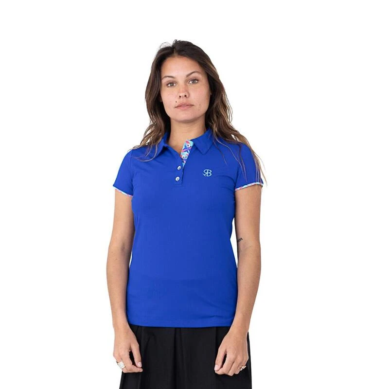 Leuke moderne dames golfpolo van Chiberta. De gebruikte materialen zijn speciaal om in te sporten. De polo heeft leuke contrast materialen verwerkt in de sluiting, armgaten en de onderzijde. Het Franse mer Chiberta zie je niet overal op de golfbaan hierdoor kan je je makkelijk onderscheiden.