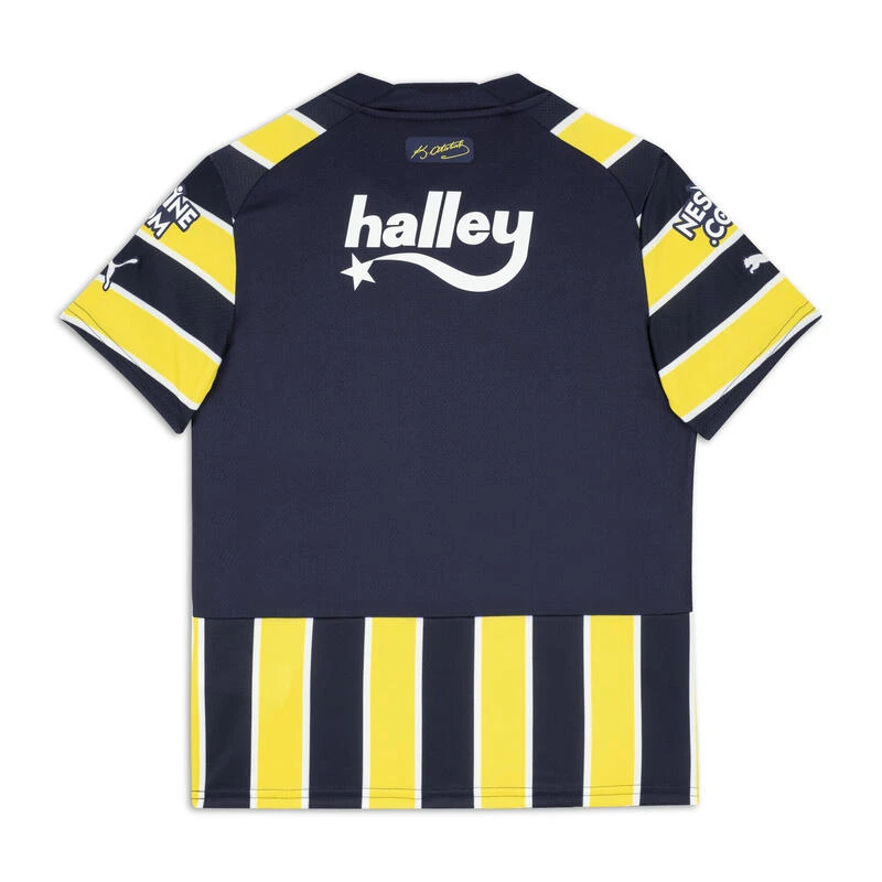 Het licht van Fenerbahçe gaat nooit uit. Het 2022/23 Fenerbahçe S.K. thuistenue is geïnspireerd op de plek die de naam van de club in 1907 inspireerde: Fener voor vuurtoren en bahçe voor tuin. Het shirt heeft witte contouren op de gele en marineblauwe strepen. De strepen staan in een hoek van 360 graden rond de schouders en bootsen lichtstralen na van de historische vuurtoren van Fenerbahçe.
