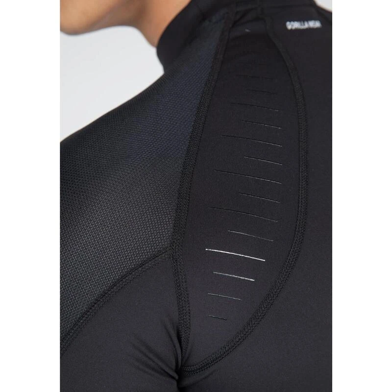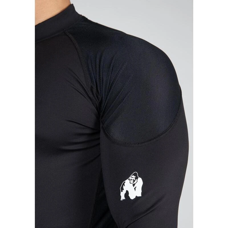 Ga elke uitdaging aan met de Gorilla Wear Lorenzo Performance Long Sleeve. Deze longsleeve is ontworpen voor zowel indoor workouts als outdoor trainingen. De longsleeve is gemaakt van rekbare stoffen en heeft raglanmouwen, waardoor je genoeg bewegingsruimte hebt tijdens workouts. De Lorenzo Performance Long Sleeve houdt je lichaam ook warm als je buiten bent. De zweetafvoerende top heeft een slanke pasvorm en accentueert je lichaamsbouw. De schouders en zijkanten zijn van mesh wat zorgt voor extra ventilatie. Dankzij de duvalueaten blijven de mouwen goed op hun plaats zitten. Afgewerkt met Gorilla Wear branding op zowel de borst als de arm. Maak je outfit compleet met een heren tights.
