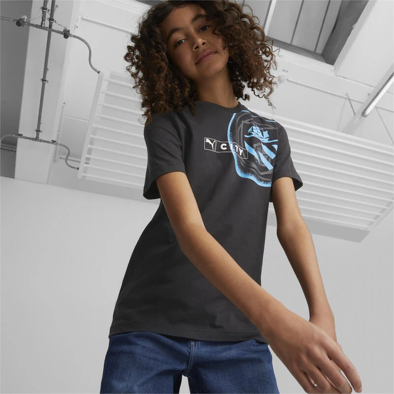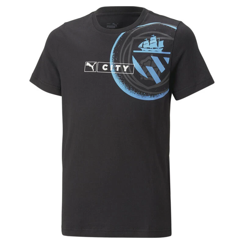 Toon je steun voor Man City en hun legendarische geschiedenis in dit ftblLegacy T-shirt. Het heeft graphics op de voorkant, waaronder PUMA- en Man City-logo’s in rubberprint, en een grote grafische print bovenaan op de linkerschouder.