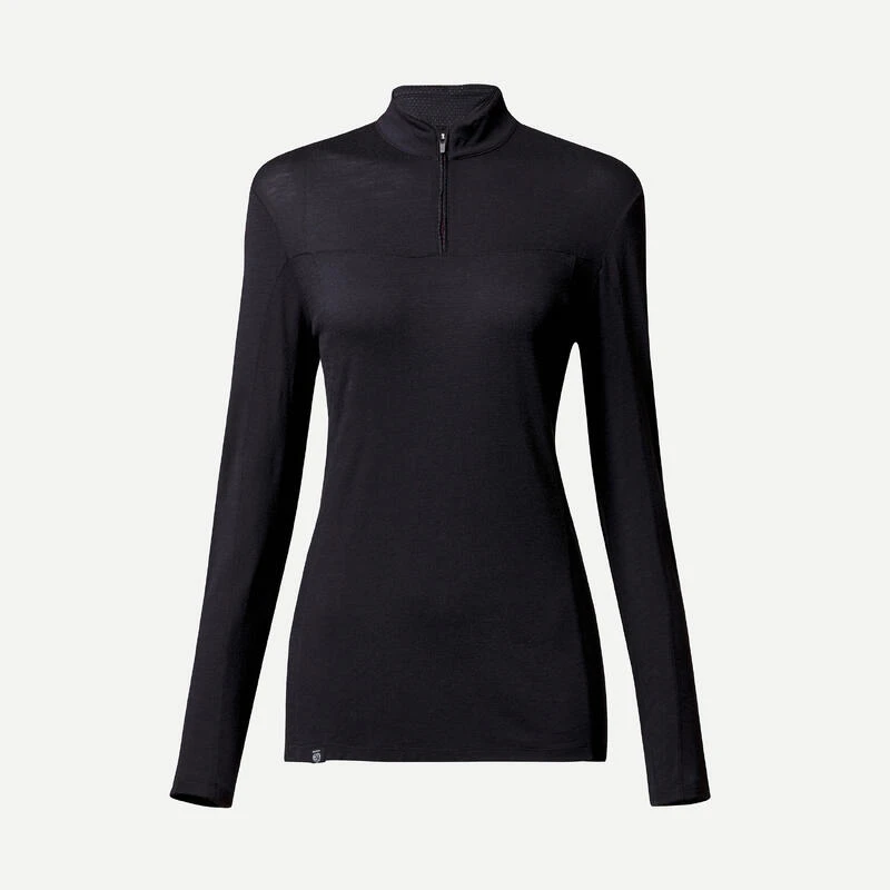 Merino Shirt Voor Trekking Dames MT500 Lange Mouwen Rits Aan De Hals