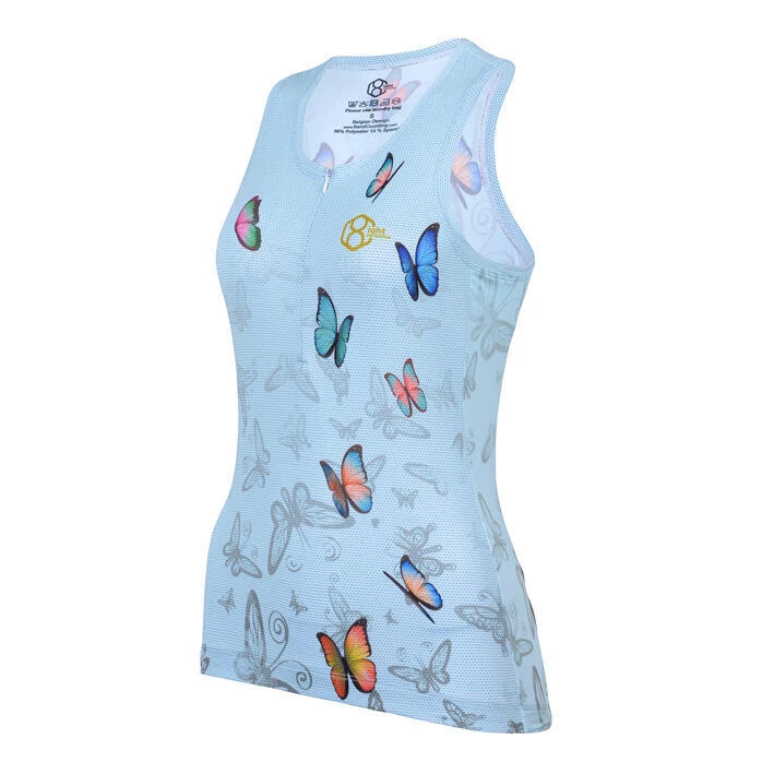 Zeer comfortabel en mooi uitgesneden mouwloos fietsshirt mét een halve rits.