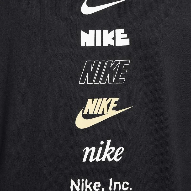 Dames Nike Sportswear T-shirt voorzien van een losse pasvorm, geschikt voor meerdere doeleinden, met gave opdruk van alle verschillende stijlen Nike logo’s.