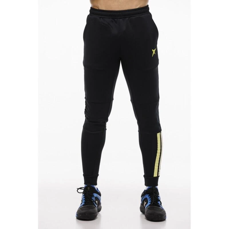 De Rayco Drop Shot Pant heeft een discrete en tijdloze stijl. Het is ontworpen om zich aan te passen aan het lichaam van de speler en zo mobiliteit te vergemakkelijken. Het kledingstuk is gedetailleerd met lijnen aan de onderkant en de print van het merklogo aan de bovenkant, beide in gele tinten.