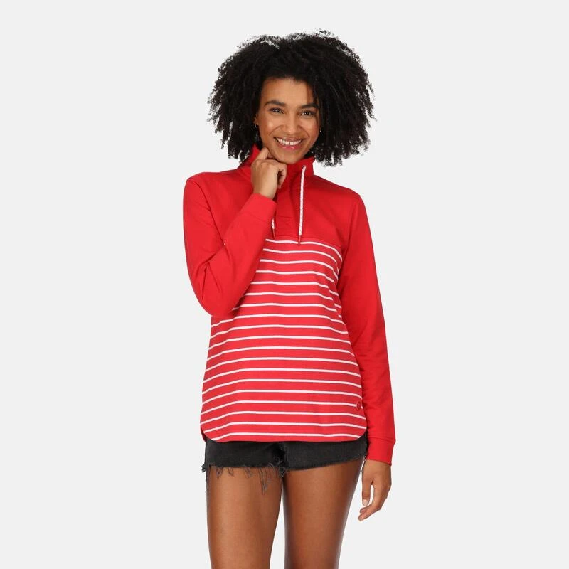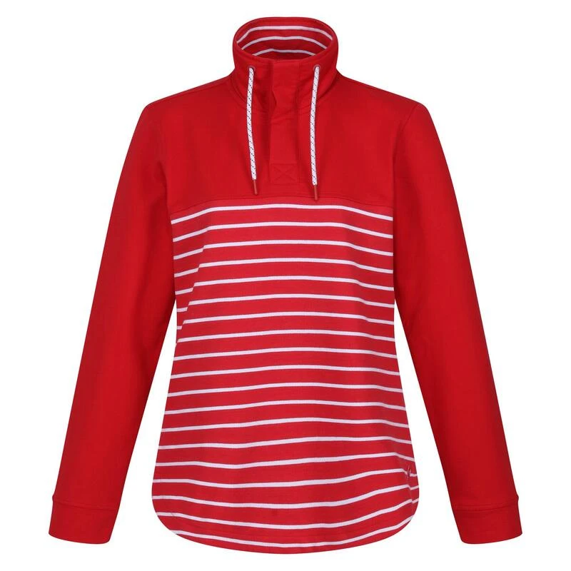 De Bayla trui met halve knopenlijst van Regatta voor dames is een vast onderdeel van de zomergarderobe. De damestrui is gemaakt met 100% duurzame katoen voor een zachte en comfortabele pasvorm. Het trekkoord zorgt voor een relaxte look.