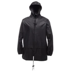 - Het is gestileerd met een verstelbare capuchon en zoom, en de mouwen hebben een elastische afwerking voor een sluitende, regendichte pasvorm..