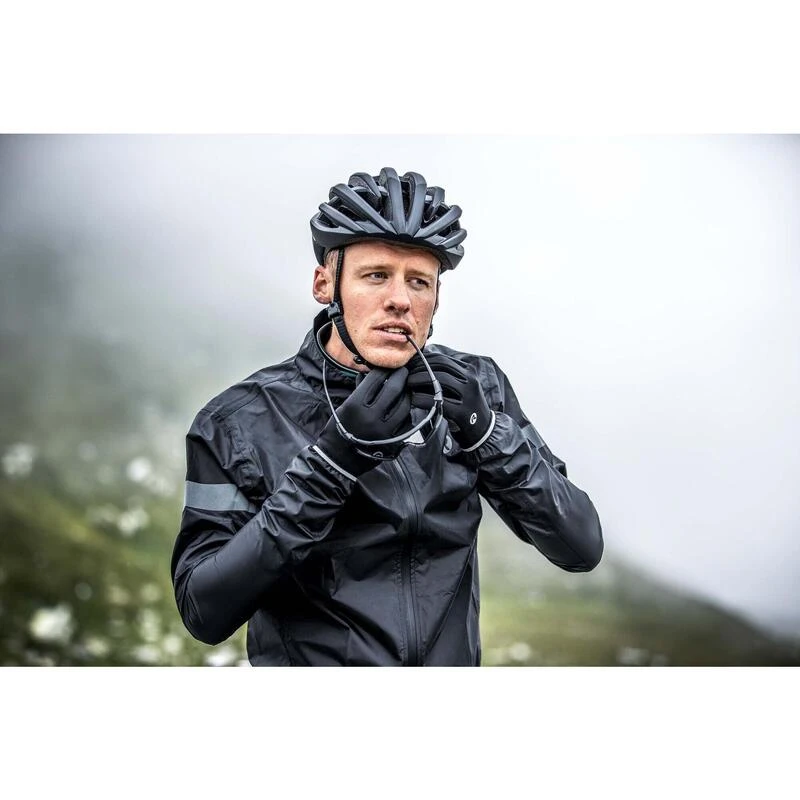 Wil jij kunnen fietsen op regenachtige dagen of goed voorbereid zijn op een aankomende regenbui? Het Protect regenjack biedt ultieme bescherming tijdens regenachtige wielertochten. Het jack is gemaakt van de zeer waterafstotende Aqualite stof die ook windbestendig is. Met dit jack bedwing jij zelfs de zwaarste regenbuien op de fiets. De klittenbandsluiting aan de mouwen zorgt ervoor dat de mouwuiteinden altijd perfect aansluiten zodat ook je polsen droog blijven. De getapte naden en de waterdichte rits van het jack beschermen je optimaal tegen de regen. In het interne opbergzakje neem je ook je spullen droog mee. De verlengde achterzijde beschermt daarnaast tegen opspattend water. Dankzij de Reflecterende accenten op de mouwen en de tailleband blijf je bij donker en regenachtig weer goed zichtbaar. Met het Protect regenjack houdt geen enkele regenbui jou tegen om te genieten op de fiets. Laat die regen maar komen, jij bent er klaar voor!