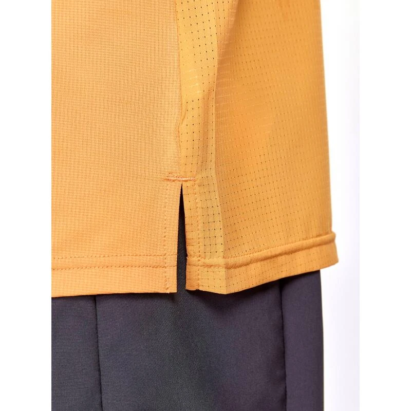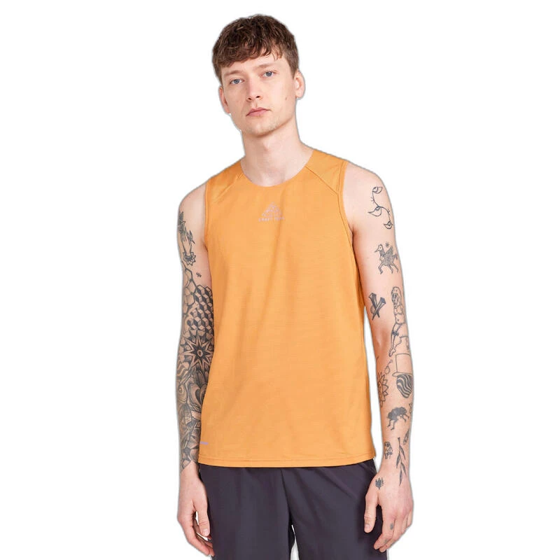 Deze hoogwaardige hardlooptanktop is gemaakt van een jacquard jersey stof met een structure ripstop aan de voorkant en een geweven stretch mesh aan de achterkant voor extra ventilatie en bescherming tegen slijtage bij gebruik van een rugzak.nDe tanktop heeft ook zijsplitten voor meer bewegingsvrijheid, een klein stretch mesh zakje bij het bovenste rugstuk en een gelijmde halszoom om schuren te voorkomen. nBovendien heeft het kledingstuk een siliconenprint op de schouders voor een stevige grip bij het dragen van een rugzak of hydratiesysteem tijdens lange runs.