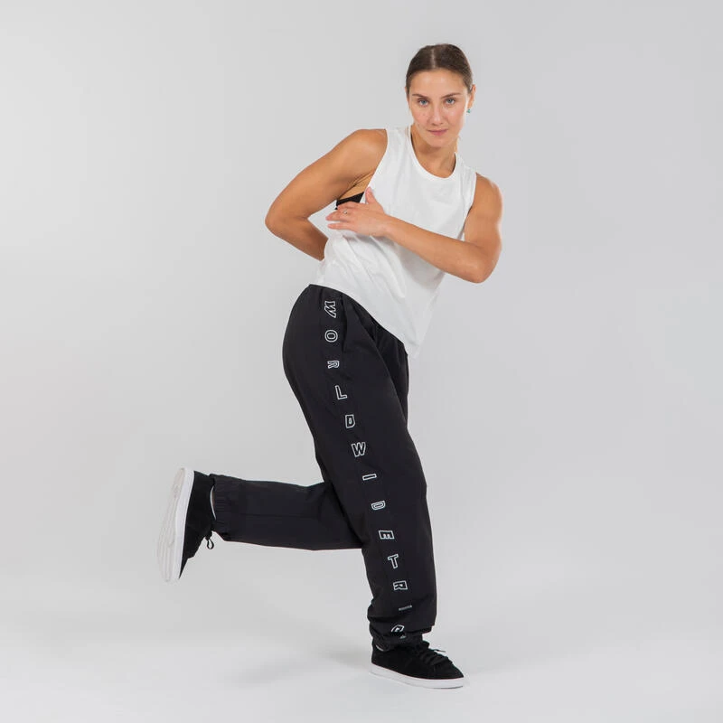 8655539Ons team ontwikkelde deze top met print en urban look voor wie aan streetdance doet op elk niveau en een comfortabel en stijlvol shirt wil.Op zoek naar een mouwloos shirt voor je lessen streetdance? Deze top met trendy print heeft grote armsgaten zodat je comfortabel kan dansen en al je bewegingen goed te zien zijn.