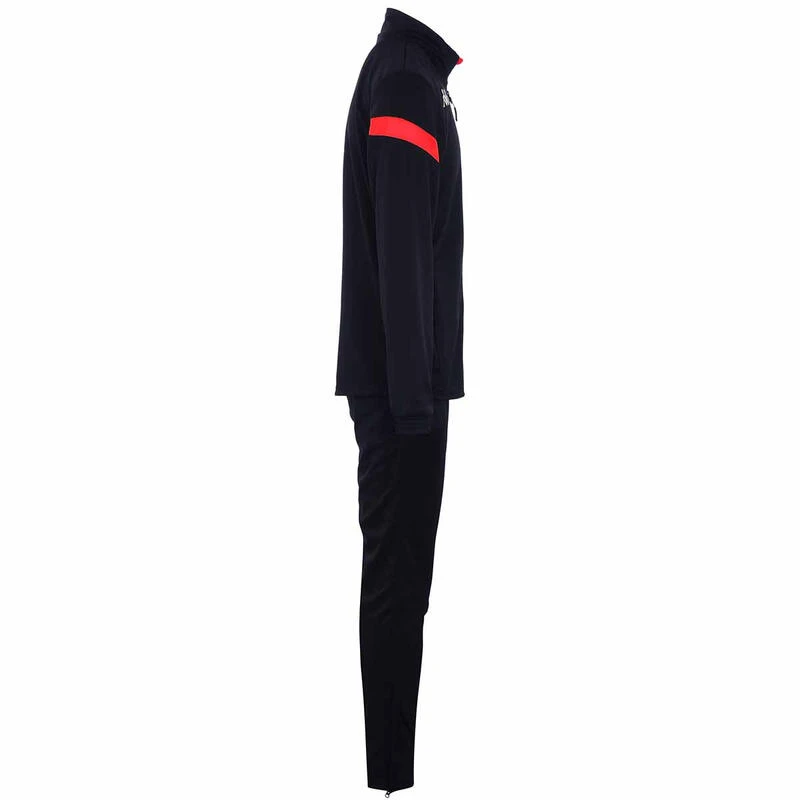 100% polyester trainingspak, SLIM FITJasje met lange mouwen, opstaande kraag, ritssluiting, zijzakken zonder ritssluiting, gekleurde strepen op de mouwen, elastische tailleband met aantrekkoord aan de binnenkant, omini op de borst en op de voorkant van het trainingspak onderaan.